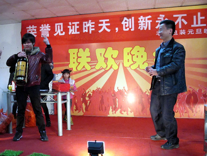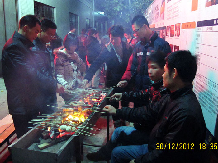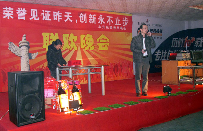 2012年12月30日,豐興包裝元旦晚會在公司銷廳火熱舉行。公司總經理汪志強先生與眾同樂,辦公室、營銷部、生產部等各部門員工全員參與,晚會氣氛熱烈,盛況空前。 晚會進行了抽獎活動、燒烤活動和K歌活動,每一個活動都吸引了眾多員工熱情參與。回首昨天,豐興人取得了喜人的成績;展望未來,豐興人信心百倍!在新的一年里,豐興人將繼續飽含激情,在技術、服務、市場一路高歌猛進,創新永不止步!