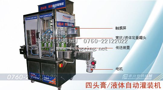 豐興包裝機(jī)械液體包裝機(jī)主力型號(hào):全自動(dòng)四頭液體灌裝機(jī)